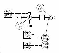 VALVE_COMPLICATED shows how one client shows an on/off valve. I like the fact that the P&ID indicates the fail position (FC) as well as the valve type (it is a ball valve). However, going to the trouble of showing the solenoid as well as the air connections and both limit switches takes up a lot of room. It’s fine if there are only a few valves on the page but think what a batch reactor P&ID might look like with some 40 valves all over the page!